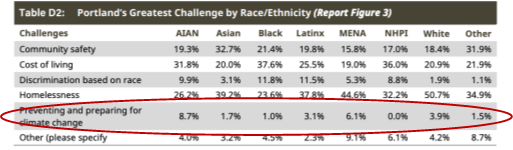 The city’s own Portland Insights Survey reports only 1-in-30 Portlanders identify climate change as the city’s greatest challenge. The numbers are even smaller among most of the frontline communities.